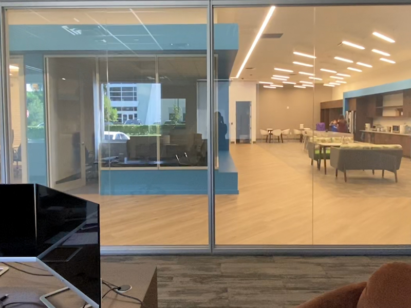 LCG® szkło przełączalne łatwo można zintegrować z przegrodami szklanymi w biurach, tworząc elastyczność dla członków zespołu, którzy mogą natychmiast wybrać prywatność lub otwarte i współpracujące środowisko. LC laminowane szkło inteligentne lub klejona folia inteligentna są idealne do zachowania prywatności, użytkowania jako tablica suchościeralna lub ekran projekcyjny w trybie nieprzezroczystym, podczas gdy SPD i Solar LC umożliwiają kontrolę zacienienia i temperatury w przypadku szkła fasadowego.
